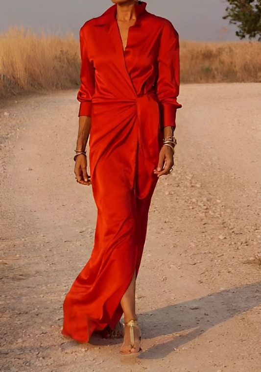 KS | Long-sleeved maxi dress with lapels and slim fit